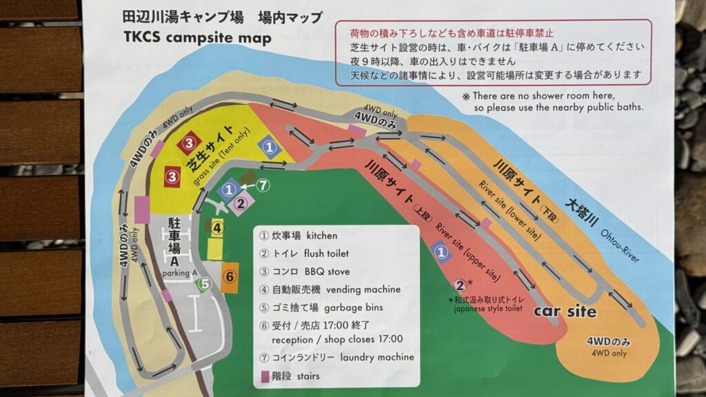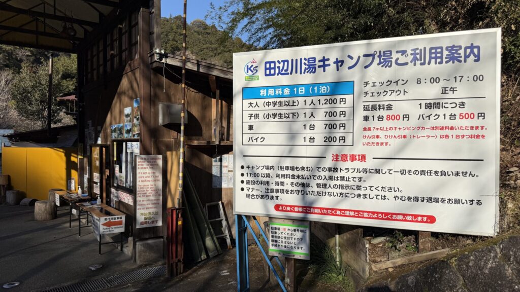 田辺川湯キャンプ場は予約不要。