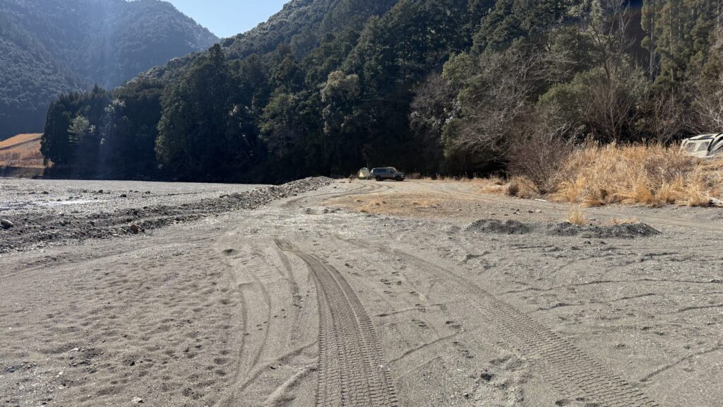車の通るゾーンとテントサイトで