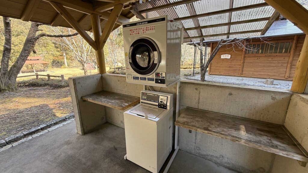洗い物苦手なズボラキャンパーに芝生サイトにはコイン洗濯機と乾燥機がありました。