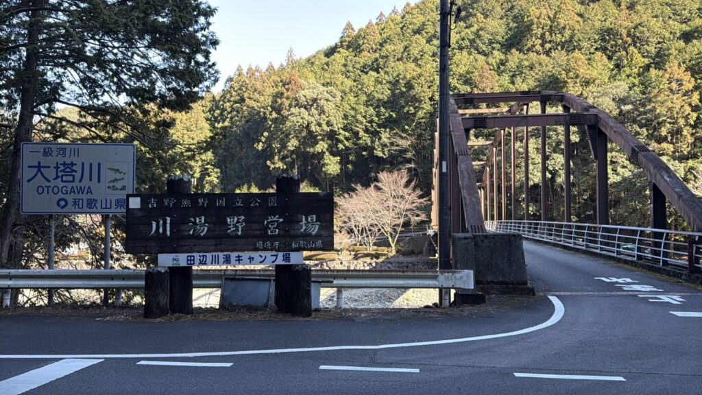 和歌山県田辺市本宮町にある田辺川湯キャンプ場です。